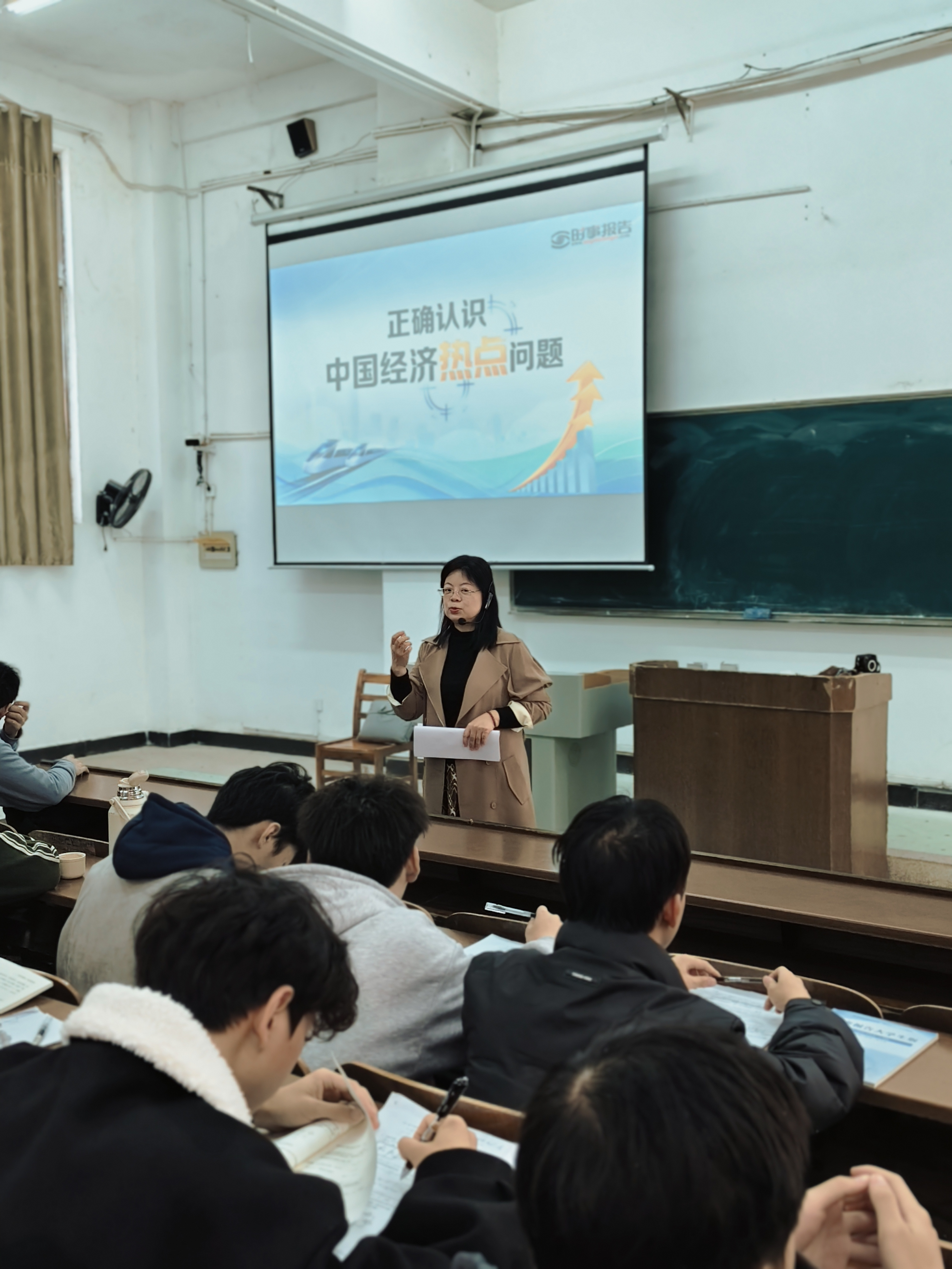 (通讯员 姚艳霞)2025年12月10日下午,学校党委委员、副校长徐姝教授在1教105教室为机电学院2411201、2411202、2411203、2411204班学生讲授了一堂题为“正确认识中国经济的热点问题”的形势与政策课。