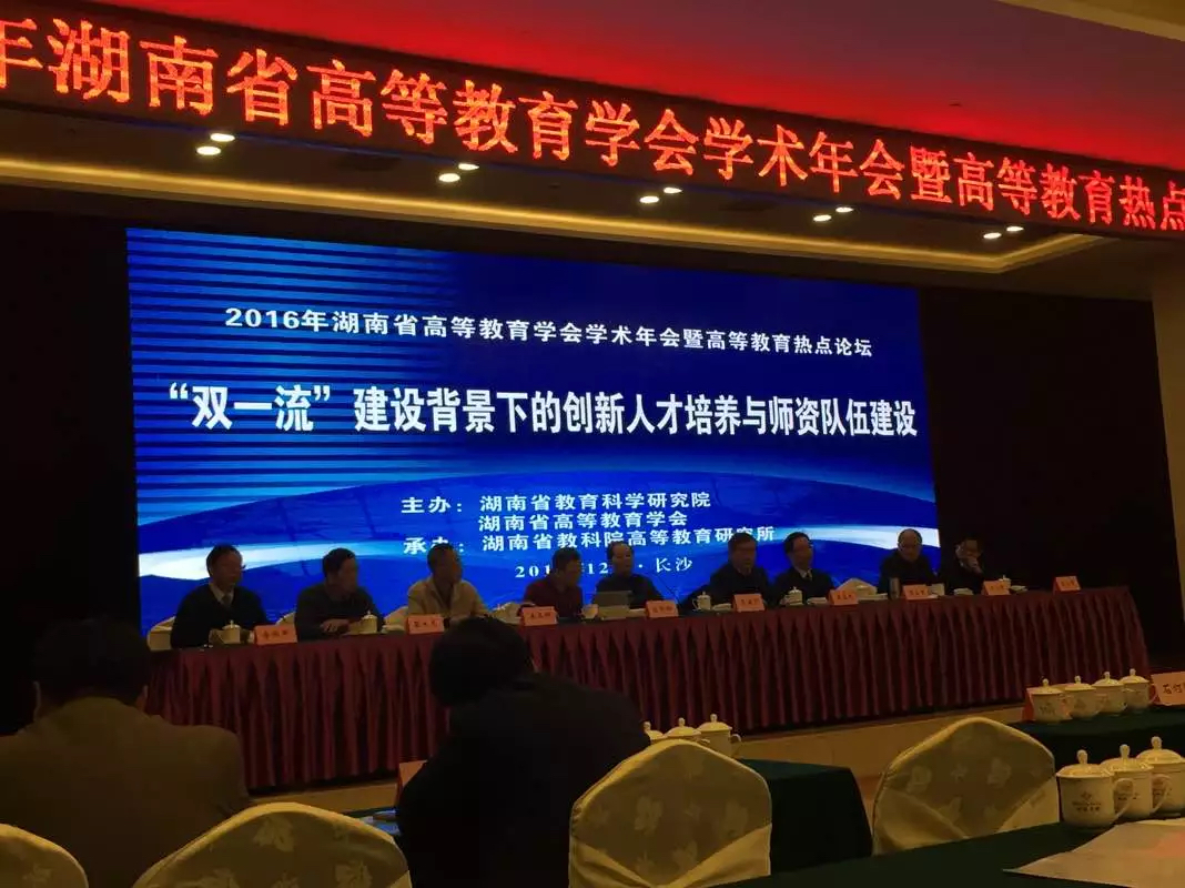 12月11日,由湖南省教科院和省高教学会联合主办、以“‘双一流’建设背景下创新人才培养与师资队伍建设”为主题的“2016年湖南省高等教育学会学术年会暨高等教育热点论坛”,在长沙枫林宾馆举行。tyc41183太阳成集团周聪老师参加了此次会议。