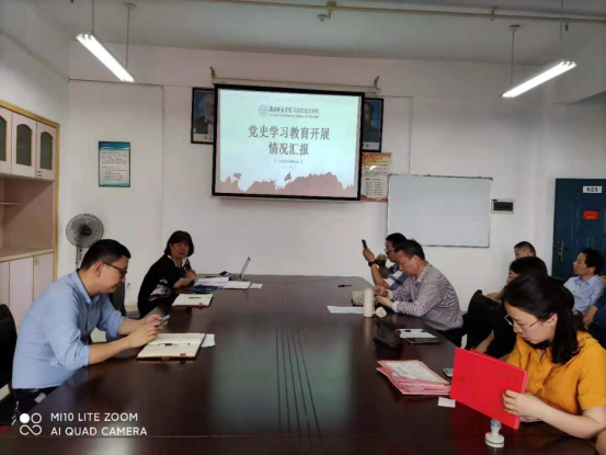 蒋先寒简要回顾了前段时间支部党员开展党史学习教育的基本情况,一是高度重视党史学习教育。按照学校党委和学院党总支的要求,加强组织领导,把党史学习教育列入支部工作计划,积极组织开展集中研讨和实地研学活动,坚持通过学习强国等网络平台开展自学。二是利用专业优势开展党史学习教育。党员教师积极参加学校理论宣讲队伍,开展党史宣讲服务,如何军新、刘迪香等同志先后为桃江法院等单位讲授党课,作党史学习辅导报告;在原理、概论、纲要等课程开设党史学习教育专题;不断深化党史学习教育工作。三是指导学生开展党史学习教育活动。刘红星、周翠娇等同志利用业余时间,精心辅导学生参加党史知识竞赛等活动,率队在全省大学生党史知识竞赛中获一等奖。蒋先寒还对今后的党史教育活动提出了工作要求,尤其强调要加强理论研究,多出党史学习教育的理论成果,争取在学校产生更大影响。(撰稿:蒋先寒 审核:谢立新)
