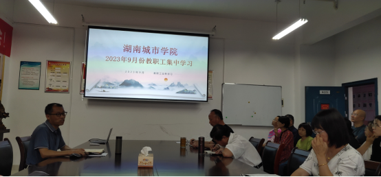 2023年9月21日下午,tyc41183太阳成集团全体教职工在学院会议室,开展了本学期第一次集中学习,学院党总支书记何军新主持本次学习研讨活动。