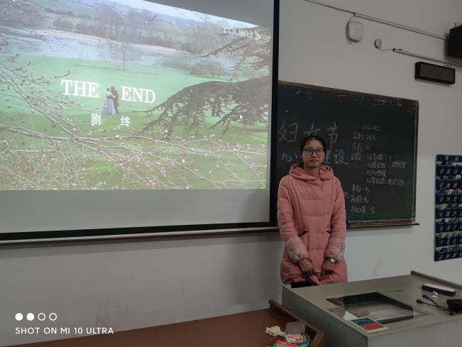 “三八国际妇女节”是一个体现尊敬和关爱的节目。针对思政教育专业女生较多的特点,2012102班全体同学举办了主题心理健康建设活动。目的在于培养青年学生正确的社会角色观念,提高广大女生的自强自力自信,教育学生懂得爱与感恩。同学们一起观看了电影《简•爱》,通过看电影来感受“爱”。电影结束后,同学们主动分享观后感言,撰写活动报告。