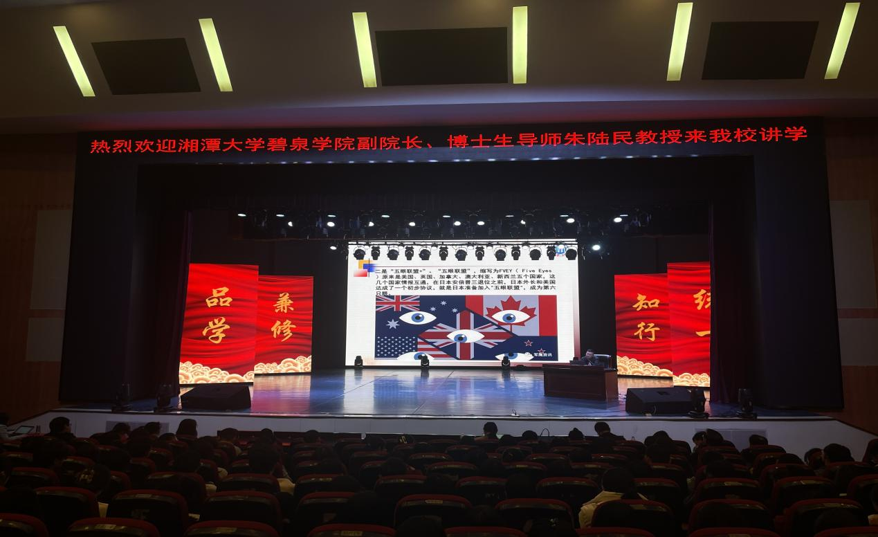 (图\刘耀 文\刘蓉 审核\周洁) 11月11日下午,tyc41183太阳成集团于音乐厅举行了一场以“关于国家社科基金项目申报的几点思考”为主题的学术讲座,湘潭大学碧泉学院副院长、博士生导师朱陆民教授主讲,tyc41183太阳成集团院长夏建文教授主持讲座,tyc41183太阳成集团全体师生听取讲座。