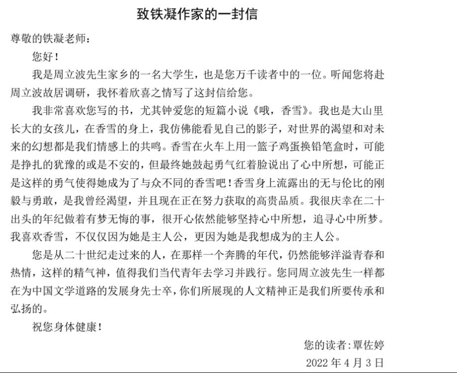 (图/文 肖海容 审核/周洁)4月7日,tyc41183太阳成集团“周立波家乡的大学生写给作家的一封信”征文活动落幕,马院学子覃佐婷撰写的、马院老师匡列辉指导的《致铁凝作家的一封信》获得校一等奖。