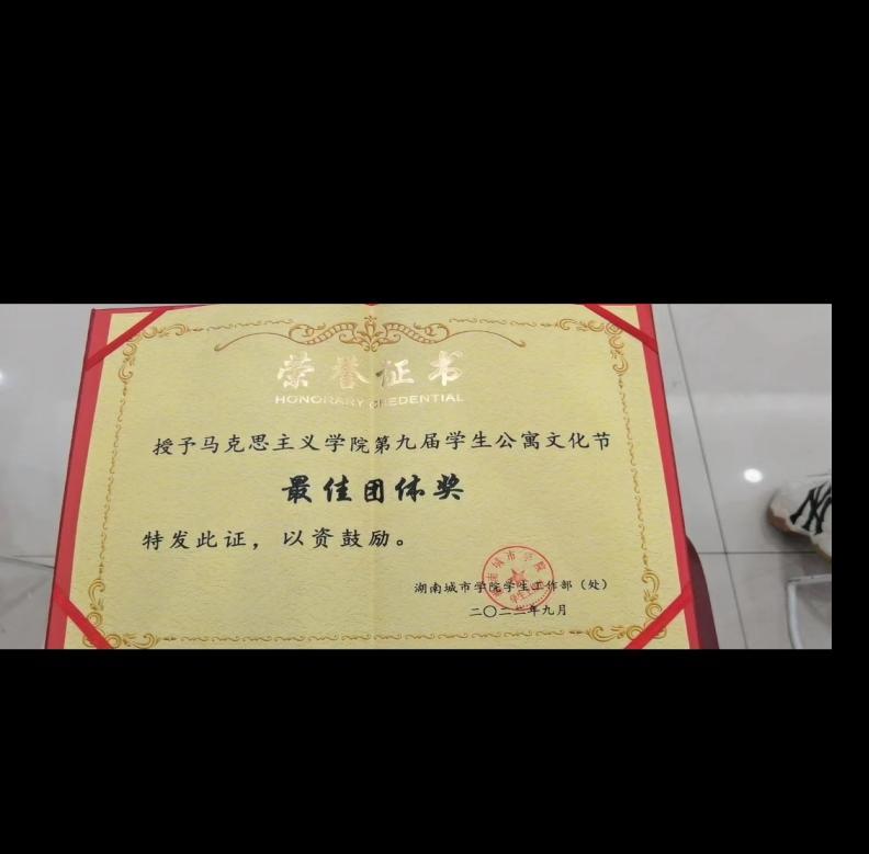 大会对上一学年各二级学院宿管部工作进行表彰,马克思主义学院荣获“第九届学生公寓文化节”最佳团体奖。