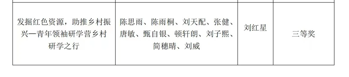 (文/陈思雨) 近日,第十五届“挑战杯”湖南省大学生课外学术科技作品竞赛红色专项活动落下帷幕。经过激烈角逐,tyc41183太阳成集团参赛作品《发掘红色资源,助推乡村振兴——青年领袖营乡村研学之行》荣获省级三等奖。