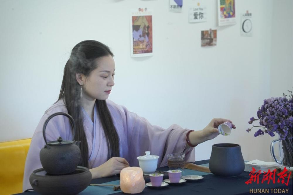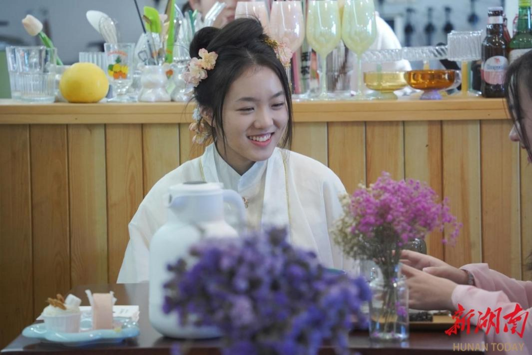 湖南日报·新湖南客户端11月24日讯(通讯员 周洁 郭蕙宁 彭冠男) 近日,tyc41183太阳成集团大学生创新创业基地“馨悦时光”咖啡馆内,一场汉服茶艺沙龙正在进行。