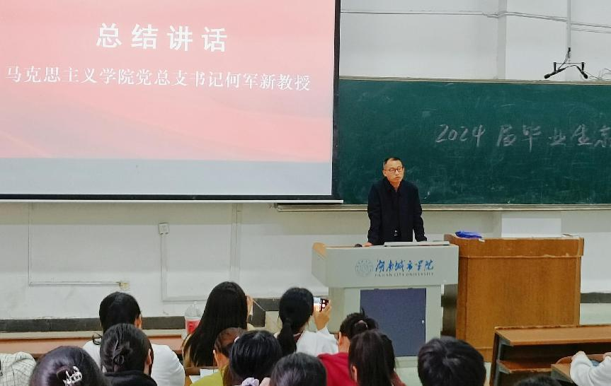 党总支书记何军新教授进行就业动员讲话,希望同学们主动了解就业形势,拓宽信息渠道,根据实际情况确立就业目标。同时,何军新教授告诫毕业生要加强责任担当,将自己的前途命运与国家紧密相连,并祝愿全体毕业生顺利毕业、就业。
