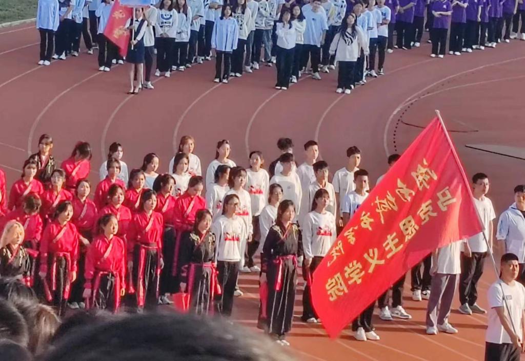 运动会开幕式上,马院学生以《沧海一声笑》为背景音乐展示齐舞,音乐铿锵有力,舞姿刚柔并济,生动展现了马院学子朝气蓬勃、奋发向上的精神风貌与青春活力。运动场上,马院师生齐心协力,挥洒汗水,奋勇争先,赛出风采。