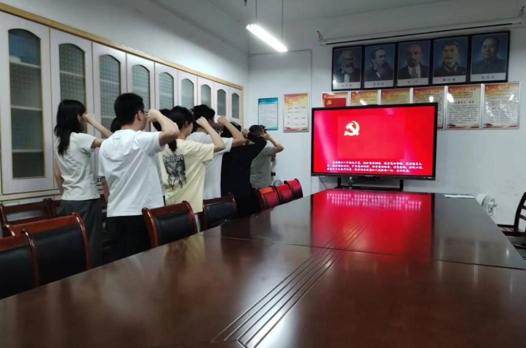 最后,支部书记王俊、副书记王莹带领新吸收的11名预备党员集体宣誓。支部书记王俊指出各位新吸收的党员同志往后要以更高的标准严格要求自己,加强学习党的理论知识,努力提升自己的能力与专业素养,以便更好地服务他人,早日为祖国献力。