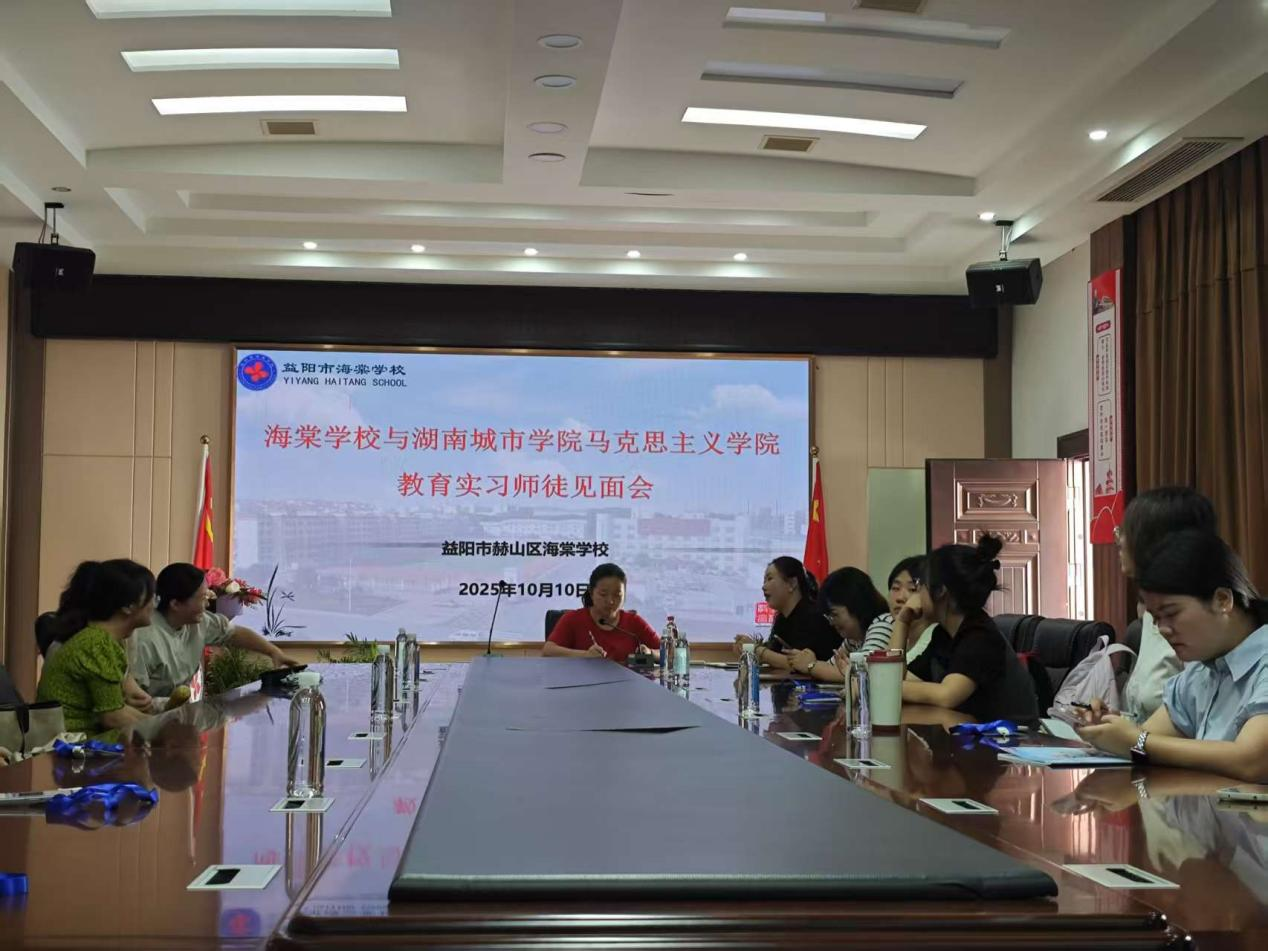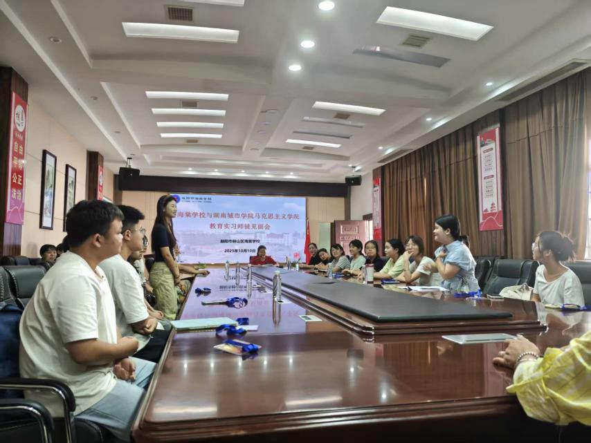 (通讯员 何越)2025年10月10日,tyc41183太阳成集团2022级思想政治教育专业实习组正式进驻海棠学校。进驻见面会在海棠学校会议室举行。海棠学校政治教研室主任肖习知主持见面会,海棠学校教导主任蔡亚、负责具体学生实习指导的政治教师出席,tyc41183太阳成集团教育实习实习组全体师生参加。