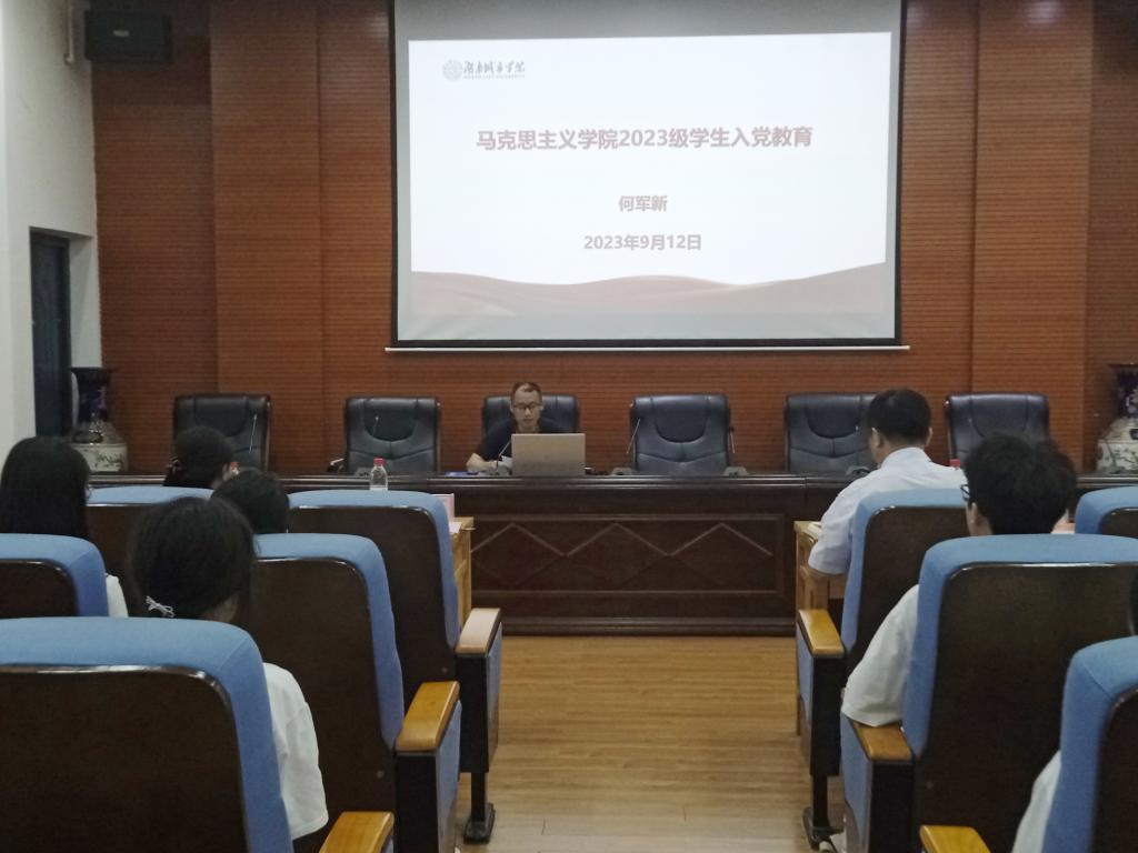 首先,学院党总支书记何军新教授代表全院老师致欢迎词。他对2023级新生表示热烈欢迎和祝贺,并对全体新生提出三点希望:一是要不断培育自己的品德修为,二是要学会学习,三是要积极关注社会。接着,他分别从树立正确的入党动机、坚持正确的入党态度、遵守入党的基本程序三个方面对新生们进行了入党启蒙教育,勉励同学们要端正思想,提升觉悟,争做表率,积极向党组织靠拢。